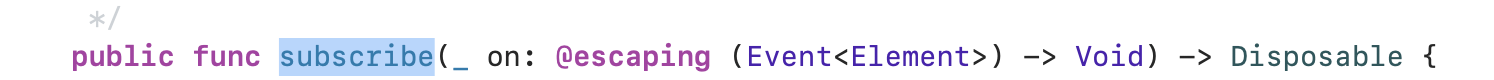 subscribe가 호출되고 난 이후 disposeable 값이 return 되는 것을 볼 수 있습니다.